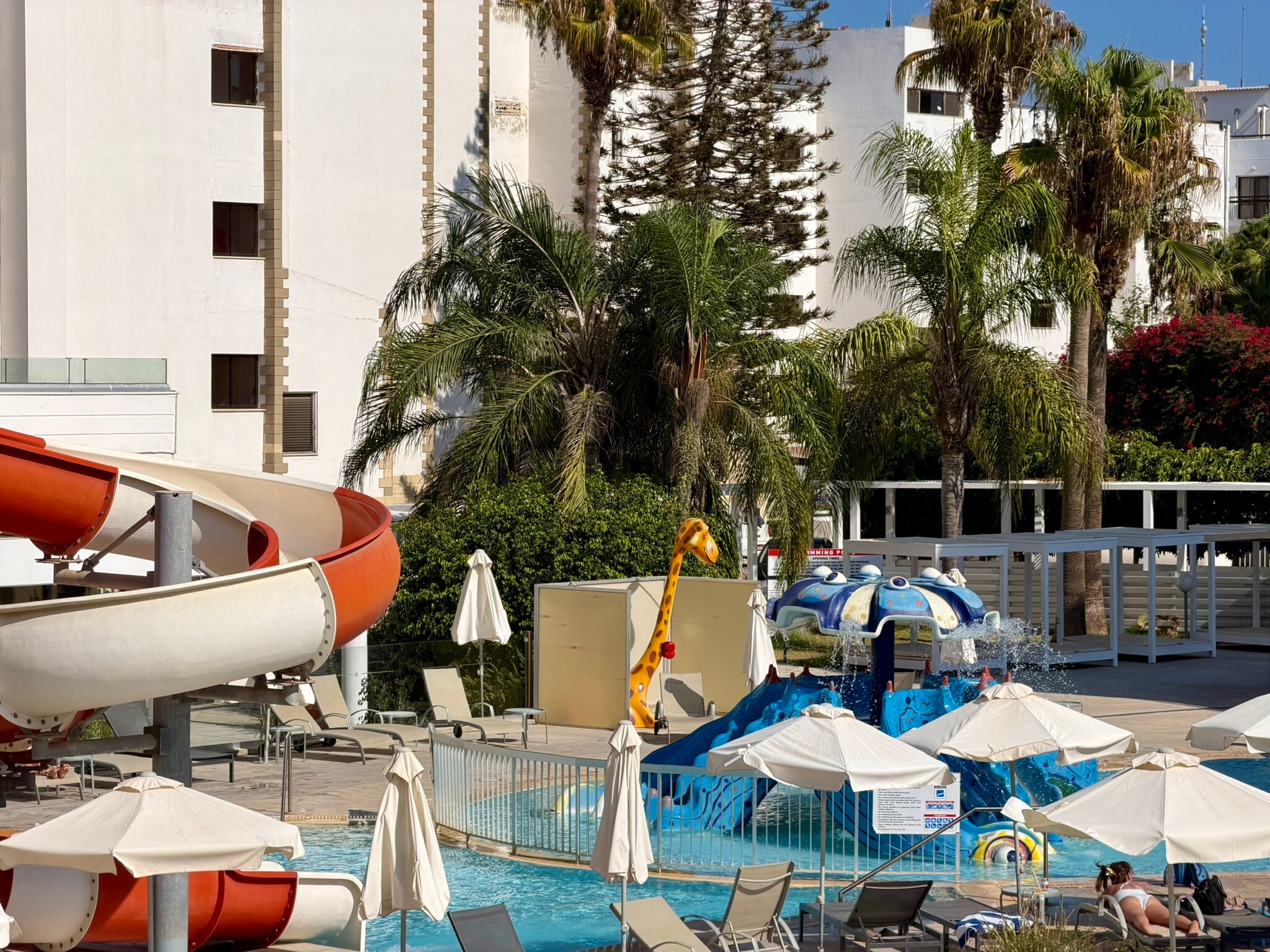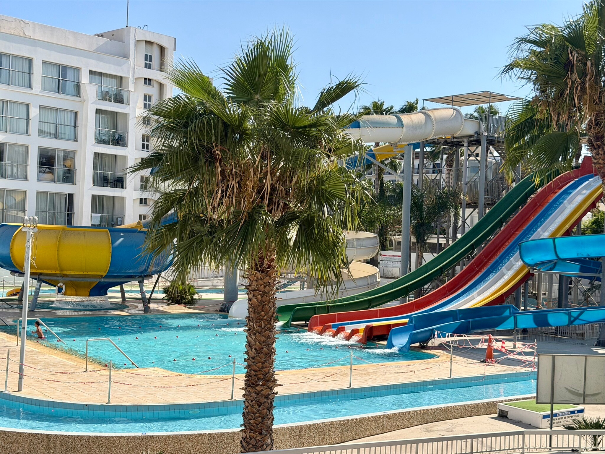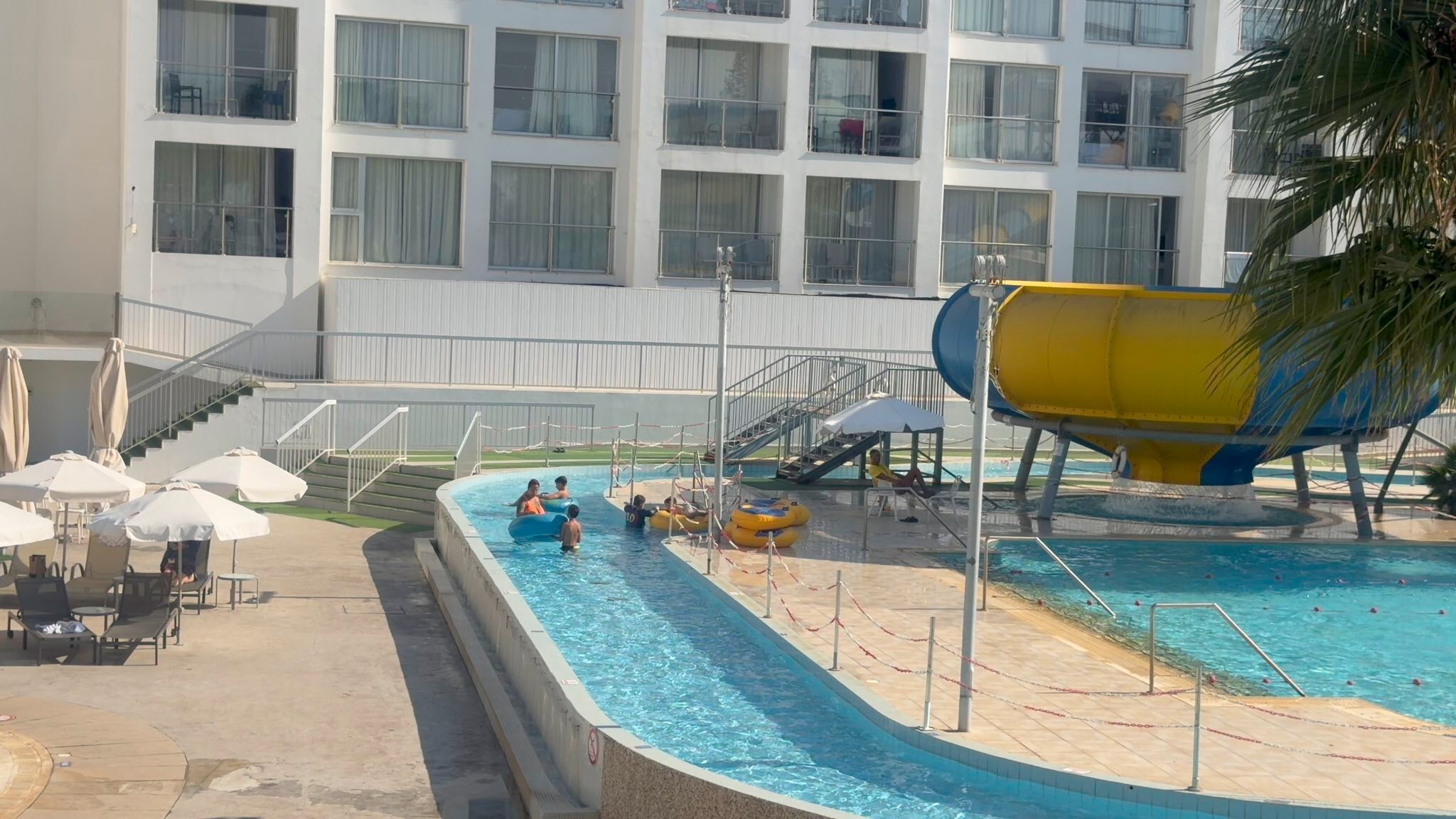 Hotel oferuje dwie strefy – główny basen do pływania i wypoczynku oraz osobną część z aquaparkiem! Zjeżdżalnie były świetne, a rzeka do pływania to prawdziwa przyjemność i szansa na relaks. Dla rodzin z dziećmi to idealne rozwiązanie, aby spędzić czas w wodzie i cieszyć się wspólną zabawą. Tutaj niestety też nie było najczyściej.