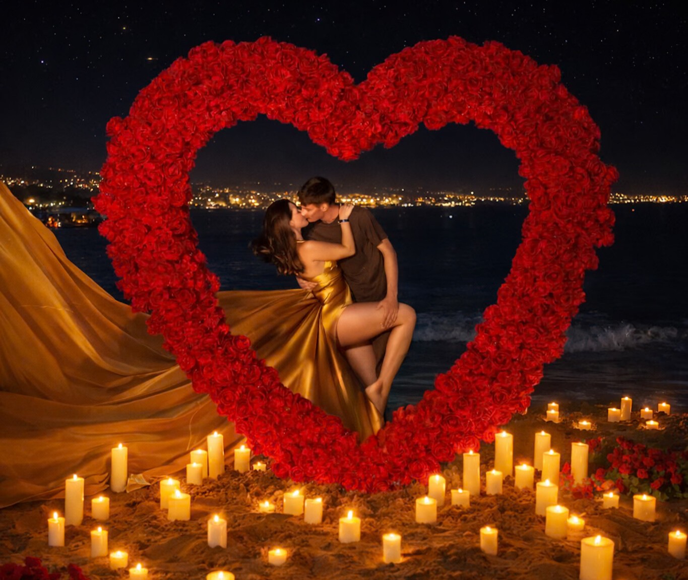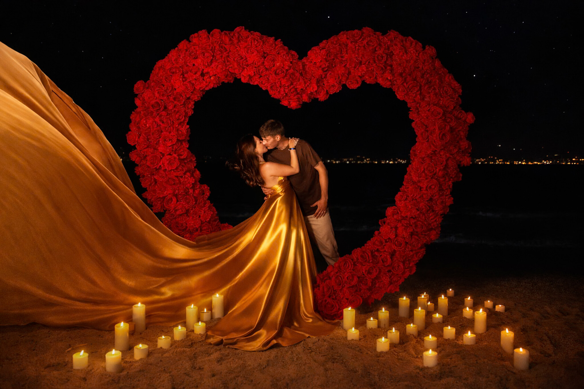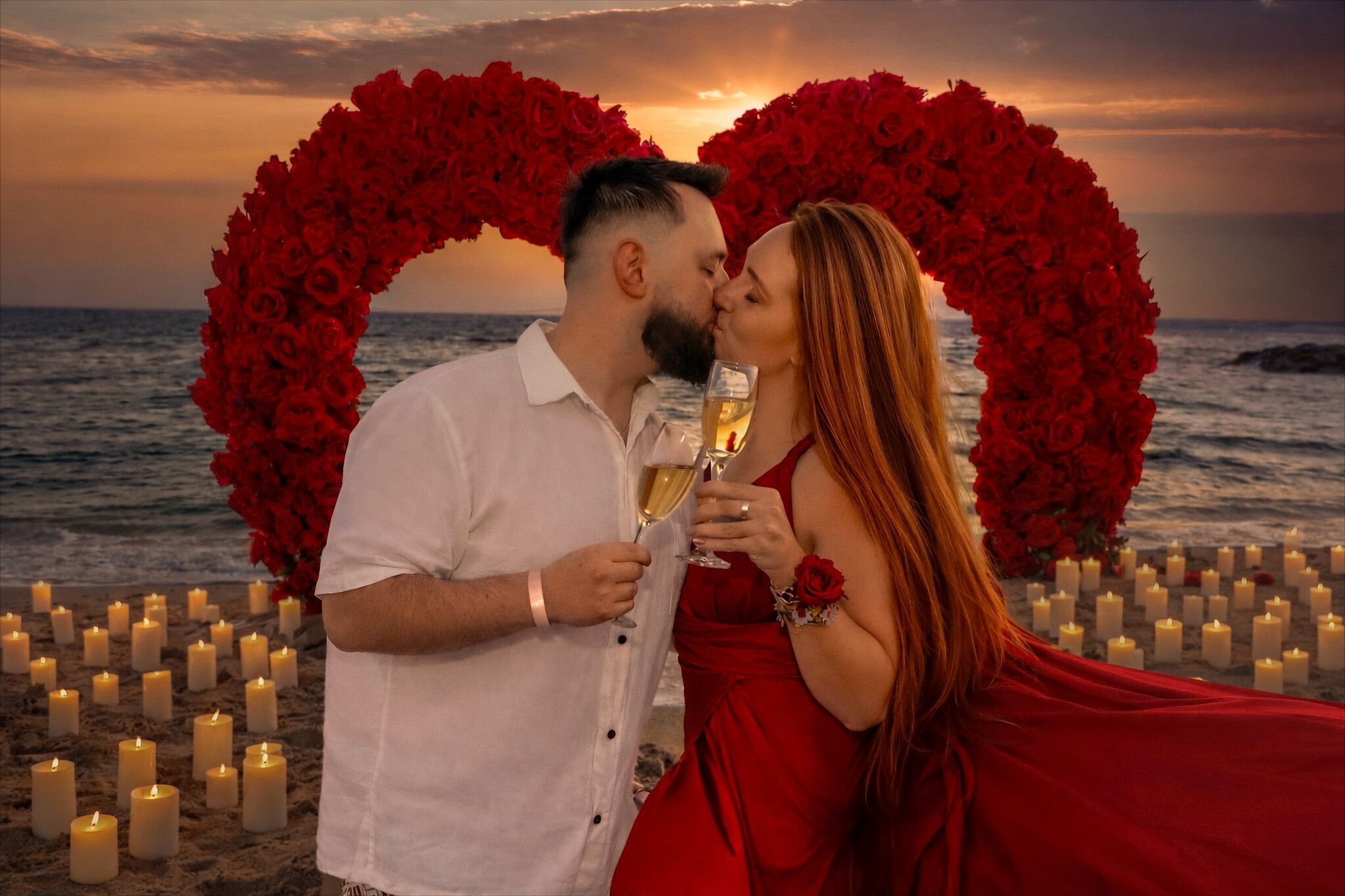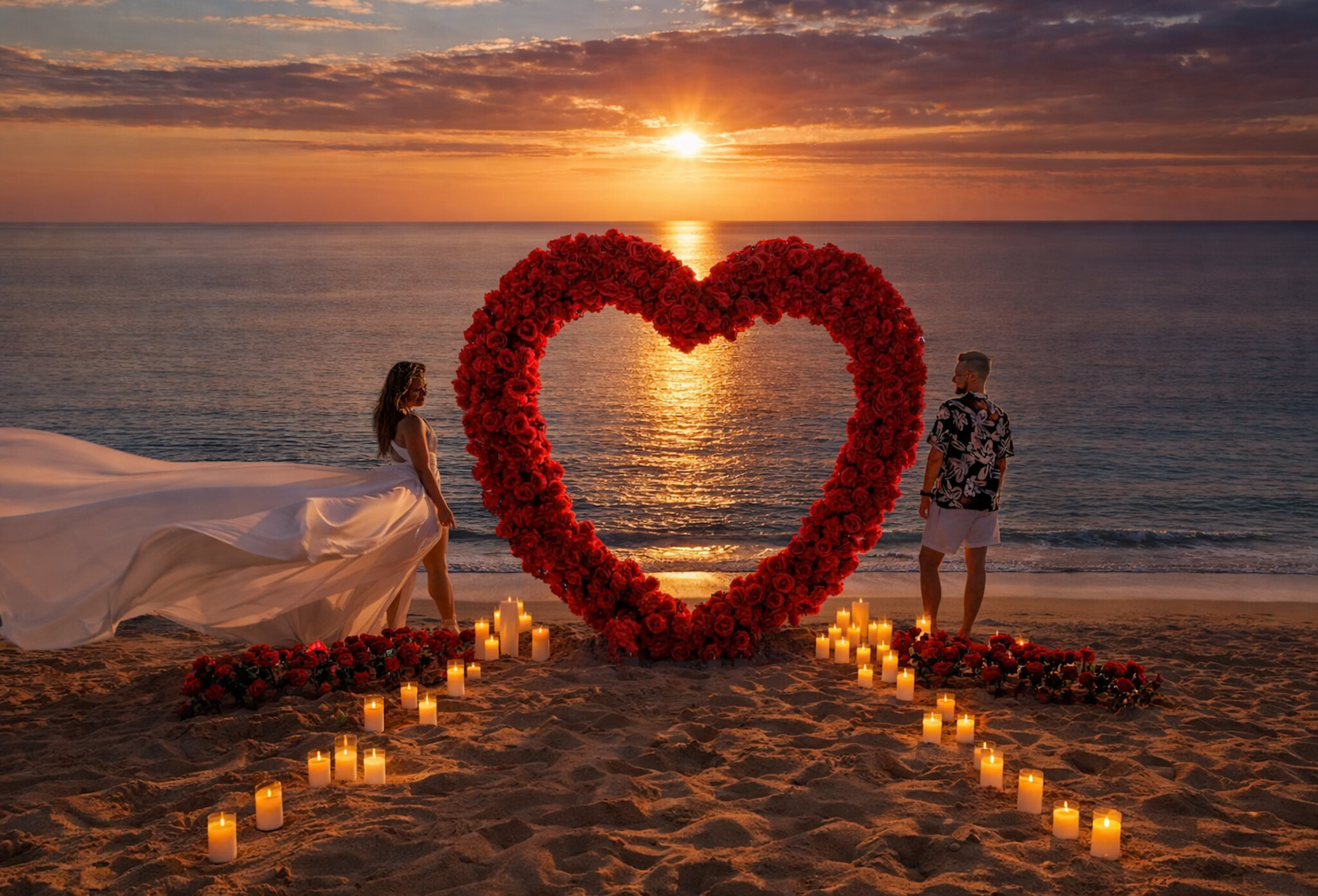 Blask świec + róże na piasku w kształcie serca + sukienka MINI lub MAXI flyingdress