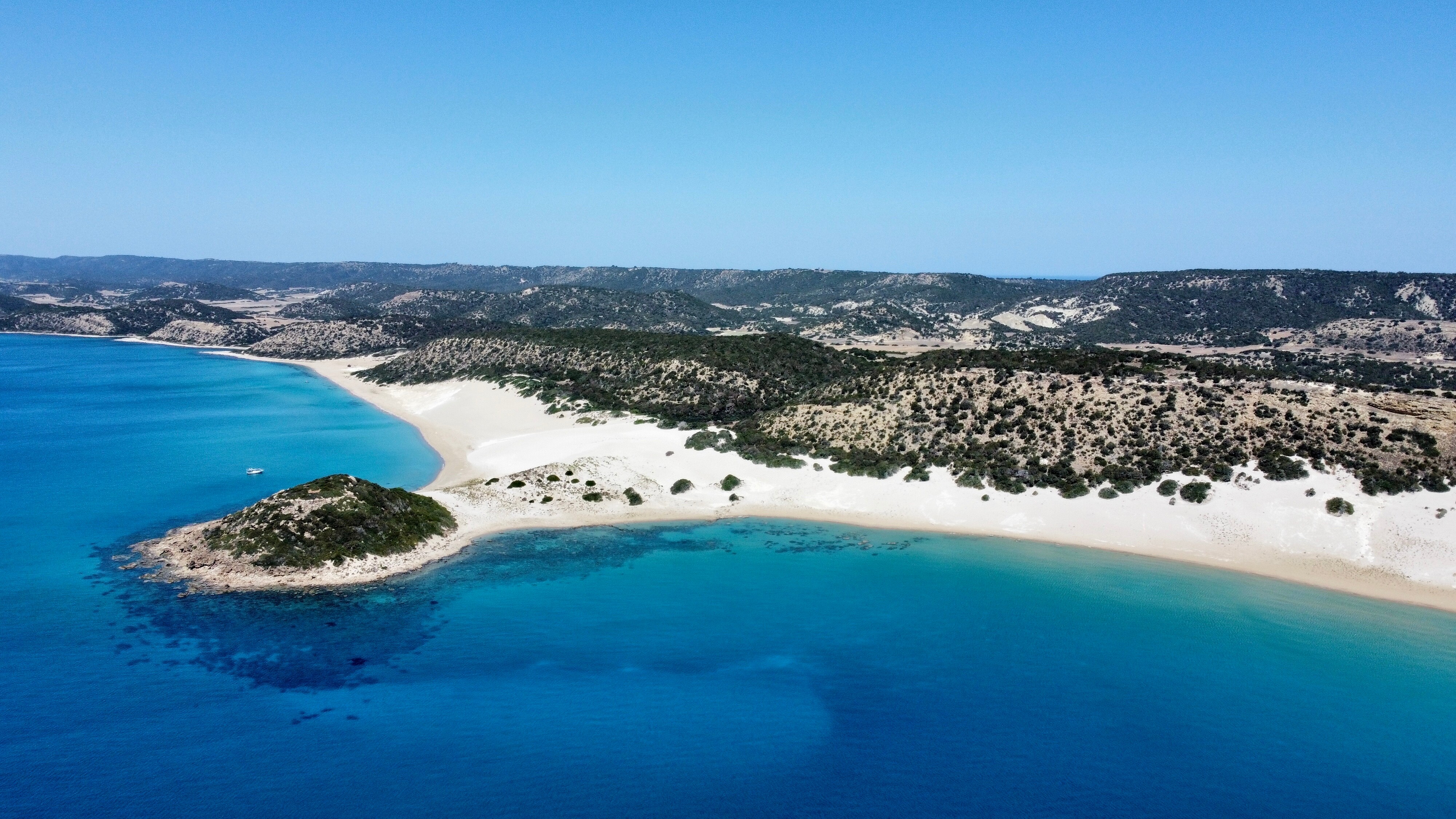 - Plaża Nissi – jedna z najpiękniejszych plaż na wyspie, słynąca z krystalicznie czystej wody i białego piasku.